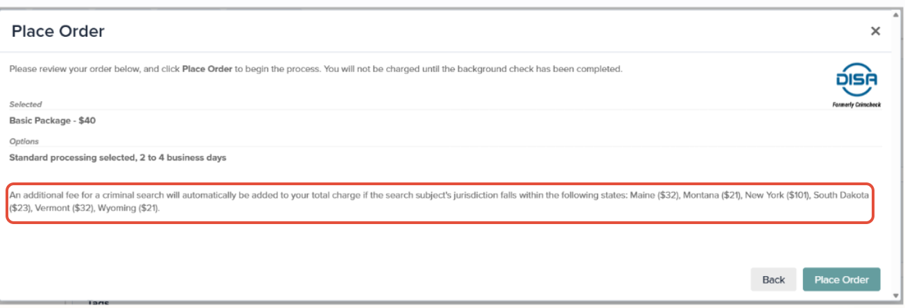 - Note: DISA will automatically process aliases when required based on state-specific regulations. Alias searches are included within the background check package when applicable; however, additional fees may be applied automatically in certain jurisdictions where expanded searches are required.